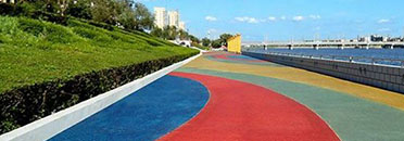 廣東路晟建筑工程有限公司是一家從事新型彩色透水地坪、藝術(shù)壓花地坪、地坪材料、環(huán)氧樹脂地坪、透水混凝土、高強(qiáng)灌漿料、地坪材料生產(chǎn)、施工、 服務(wù)為一體的專業(yè)化公司。公司產(chǎn)品遍布全國各地,主營園林地面、綠道、市政人 行道、公路、小區(qū)路面等工程。公司自成立以來,聚各方能人志士智慧和資源澘心磨礪六載,秉承“生態(tài)、節(jié)能、環(huán)保"的理念,經(jīng)公司專家和技術(shù)人員多年的專心研究,吸收新技術(shù)、研發(fā)新產(chǎn)品,開發(fā)出適應(yīng)我國生態(tài)環(huán)境的彩色透水混凝土及彩色膠粘石系列產(chǎn)品。